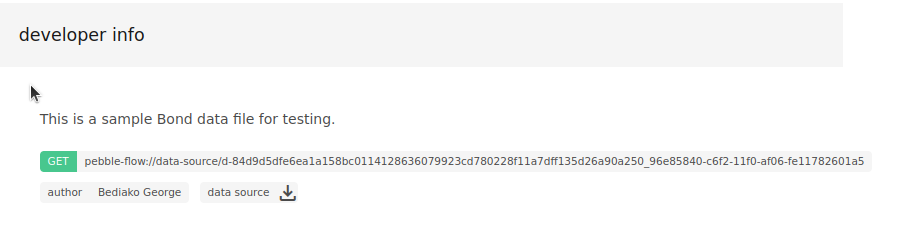 There are two ways to download results from Pebble Flow. Both mechanisms are explained here. First, developers can programmatically download data using the path URIs returned in the API field of the returned status detail.